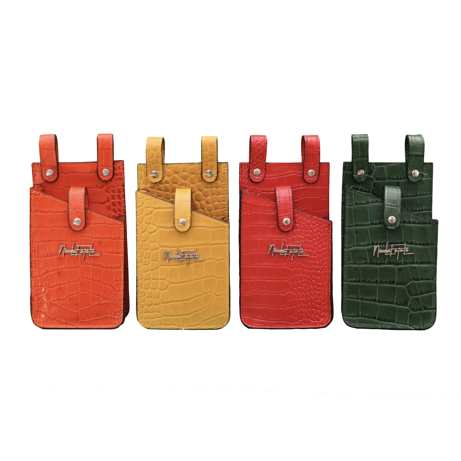 Embrace timeless elegance with the Large Crocodile-style Bag, a remarkable piece from the handcrafted Italian leather Colet Collection by Nicola Fatale. As part of our exclusive set, this bag harmonizes perfectly with the matching or any other belt of your choosing. Select from the rich colors of orange, dark green, red, and yellow, while our company's silver 3D logo takes center stage, symbolizing our commitment to luxury.