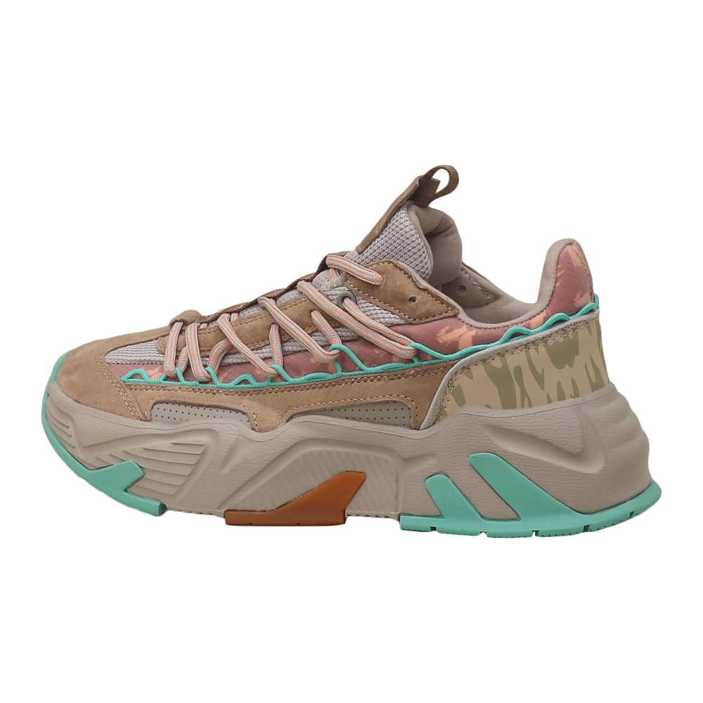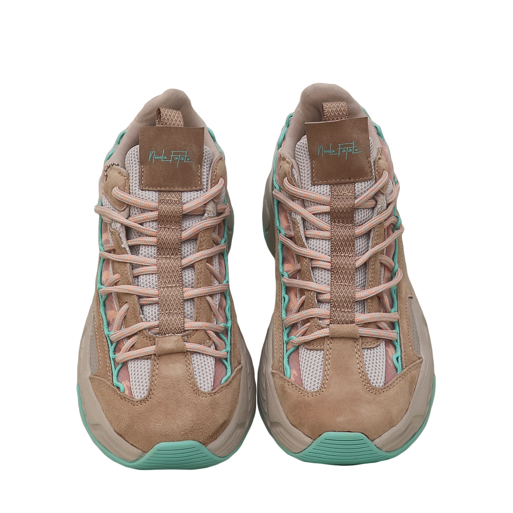 Introducing our inaugural shoe model, the Unisex Earth-toned Sneakers with Turquoise Accents from the handcrafted genuine leather Colet Collection by Nicola Fatale. Uncompromising in comfort, form, and craftsmanship, these sneakers epitomize our dedication to providing a unique footwear experience. Our company's logo in matching turquoise adorns these exceptional shoes.