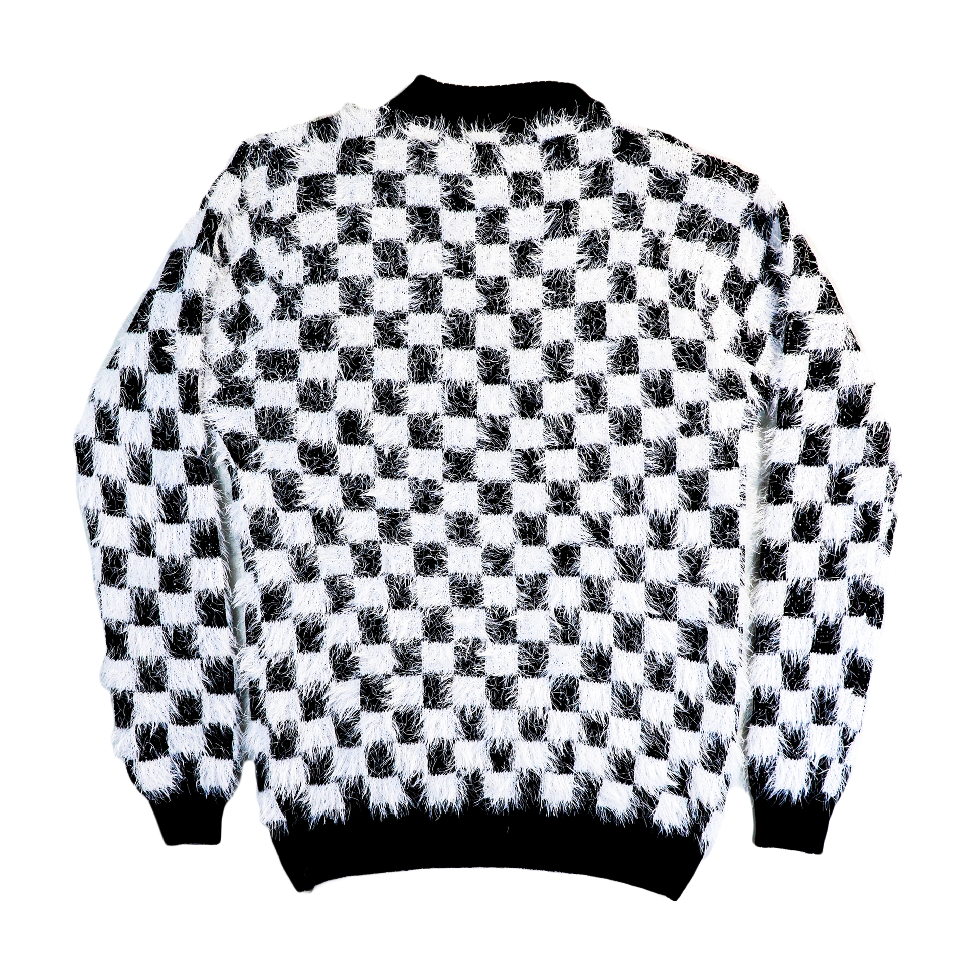 The Cach Pullover, designed to be worn with ease, features a versatile unisex cut that aligns with general European sizes M-L. Its elegant Vichy pattern, woven from fringed cotton and viscose, celebrates a timeless blend of black and white. The collection patch, a mark of distinction, graces the chest.