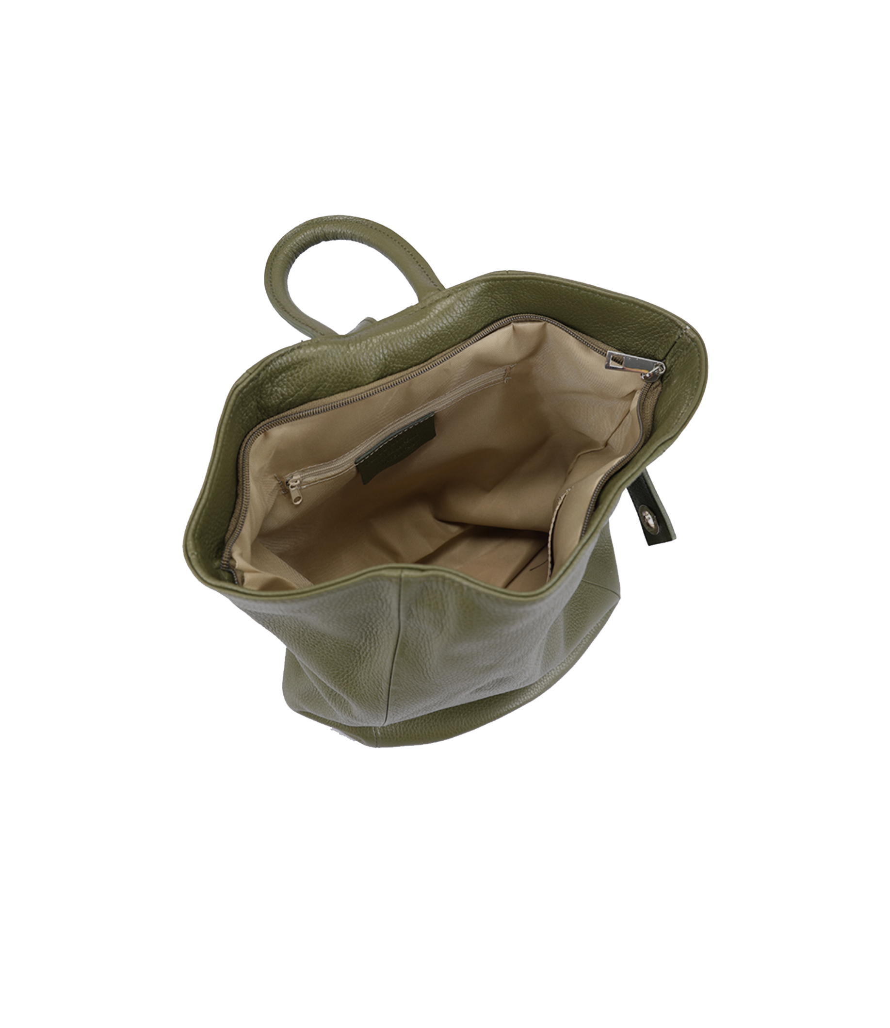 This genuine leather backpack is decorated with our embossed company logo on the closure bar. The dark green fits perfectly to the season and will accompany you for a long time due to the high quality processed leather.