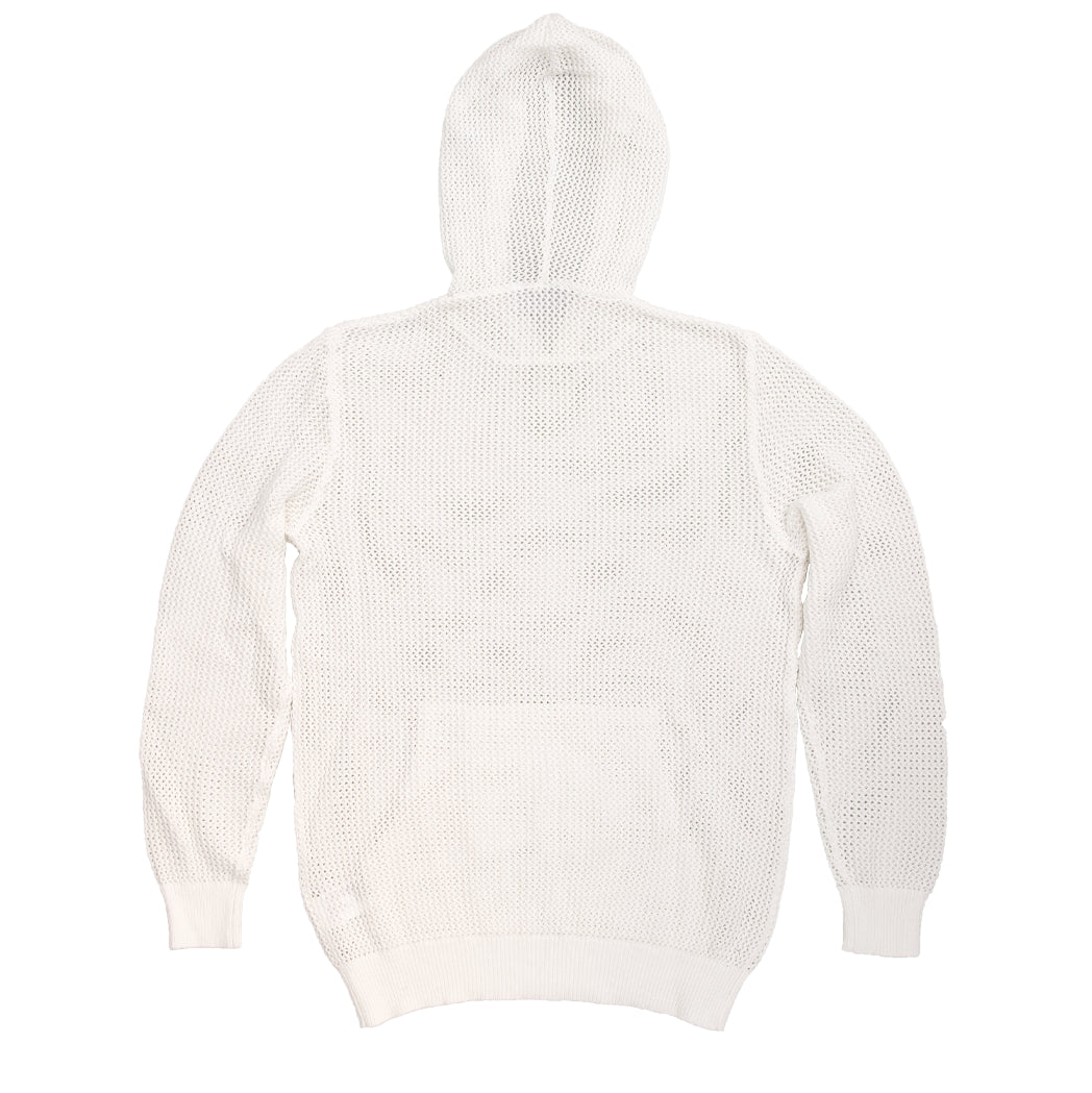 Immerse yourself in urban sophistication with our "Trapped" Hoodie. Crafted from breathable cotton and featuring a loosely knit design, this hoodie is perfect for summer days. The white fabric allows for subtle transparency, adding a hint of allure to your look. Adorned with a blue Collections Patch meticulously hand-sewn onto the front pocket, this hoodie is a versatile addition to any wardrobe.