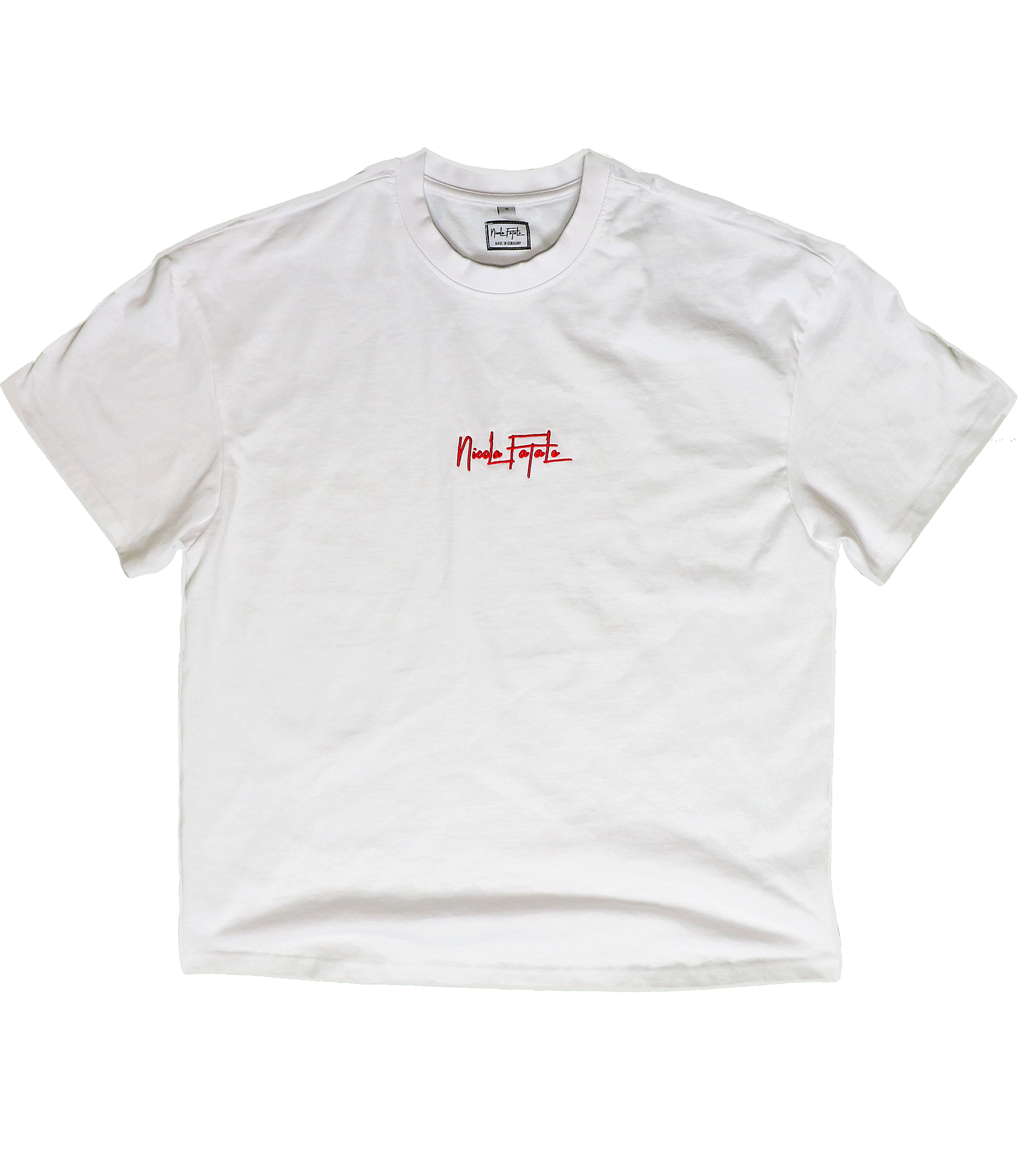 Edgy men's T-shirt that scores with a wide oversize fit and heavy cotton fabric. The shoulders are generously overlapped, the style of the men's shirt is rounded off with a classic round neck. The whole Piece is rounded off by the classic bright red embroidery on the front. An absolute must have!